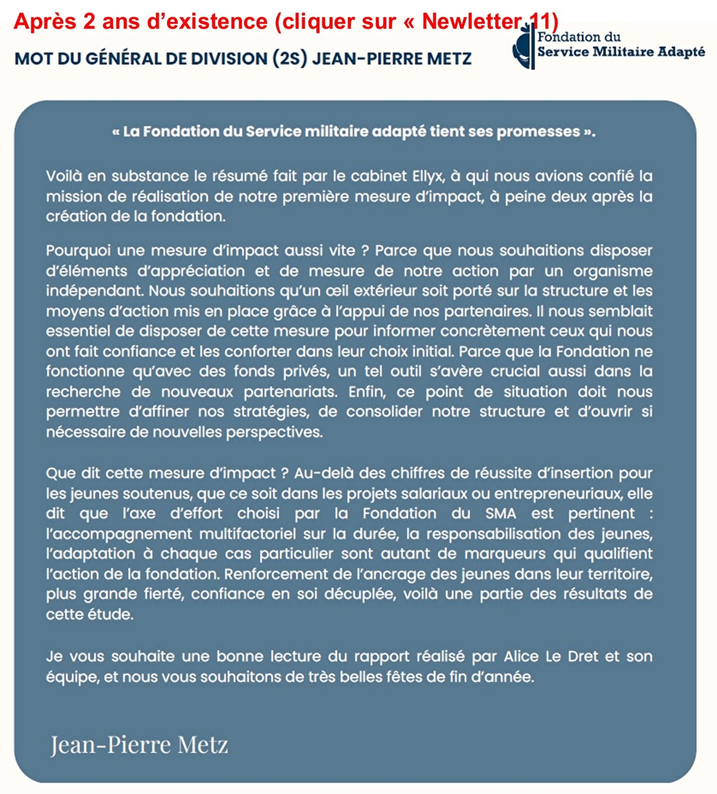 Ci-contre la "HIVER 2025" : le point 2 ans après la création de la FONDATION ==>